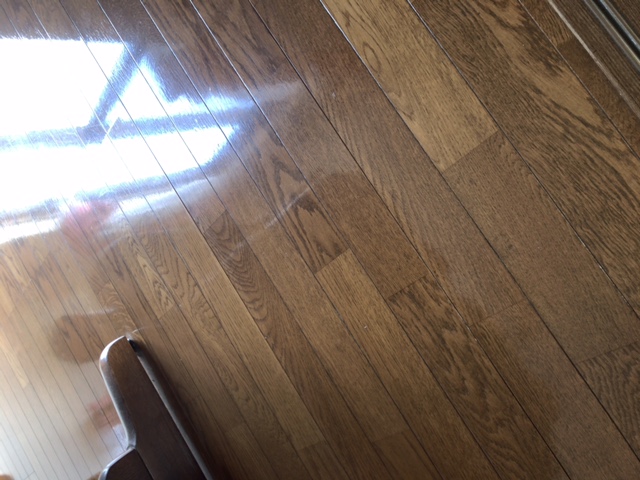 その後に昨日の続きで2階の廊下と寝室、階段のワックス掛けをやった。