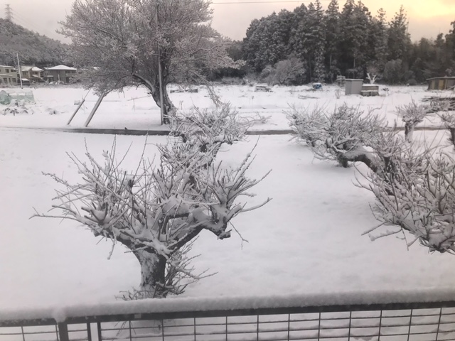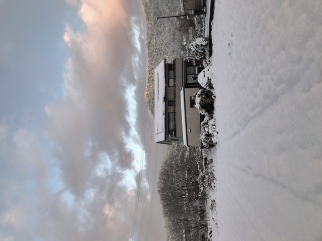 朝、起きたら雪が積もっていた。