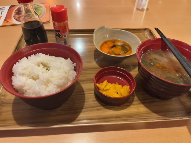 朝食のパンがなかったので24時間営業のファミレスで朝ごはんを食べた。