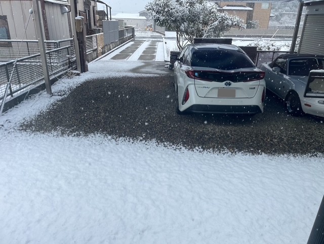 昨日、洗車したばかりなのに雪が降った。
