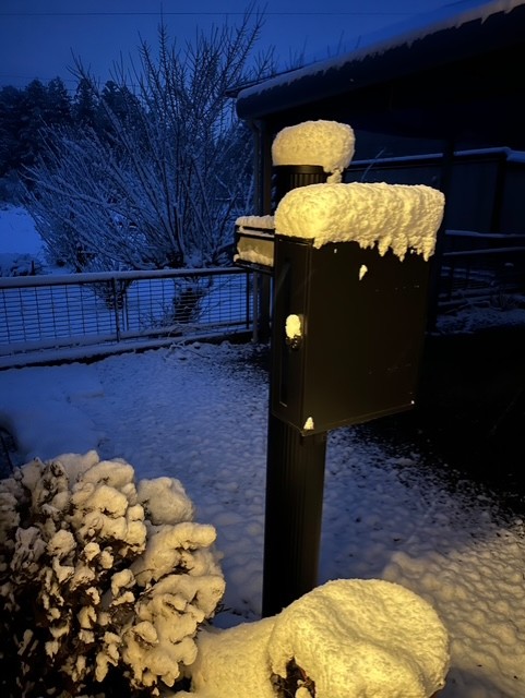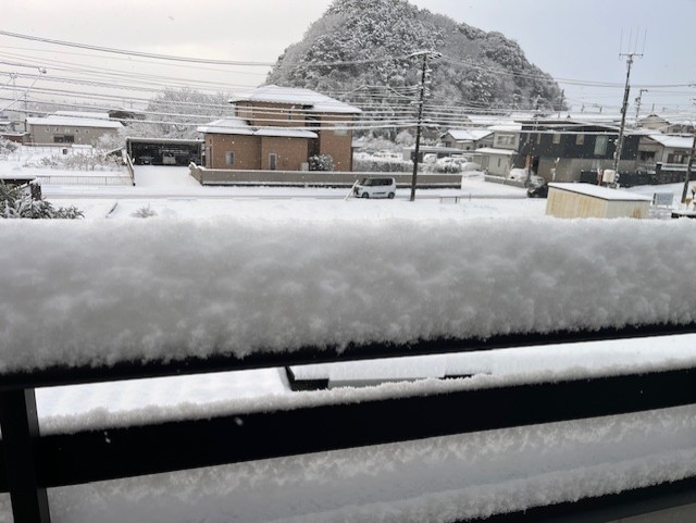 朝、起きたら雪が積もっていた。